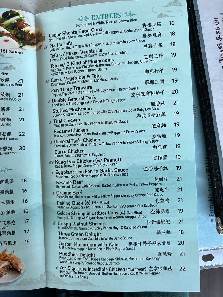 Zen Garden, a vegan and vegetarian Chinese restaurant located in Great Neck, NY, offers a tranquil dining experience with a menu full of delightful options. Customers praise the exceptional food quality, extensive tea selection, and attentive service. Dishes like curry soup, walnut shrimp, and orange chicken are described as nutritious, hearty, and flavorful. The restaurant's modern and cozy ambiance, large tables for group gatherings, and accommodating staff create a welcoming atmosphere for all. While some diners note slight drawbacks in dessert portions, overall, Zen Garden is highly recommended for a savory journey with teas, appetizers, entrees, and desserts. Whether you're a vegan or a meat lover, Zen Garden promises a delightful dining experience with a wide range of options to satisfy every palate.